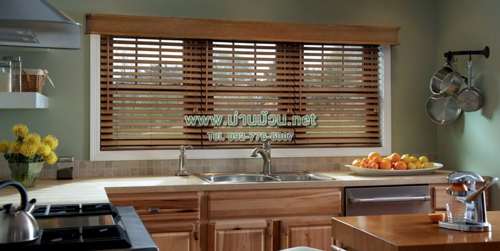 มู่ลี่ไม้บาสท์วูดลายไม้ หนา 25 มม. สามารถใช้งานได้นาน เนื้อไม้ไม่ซีดง่ายเมื่อมู่ลี่กระทบกับแสงแดด
